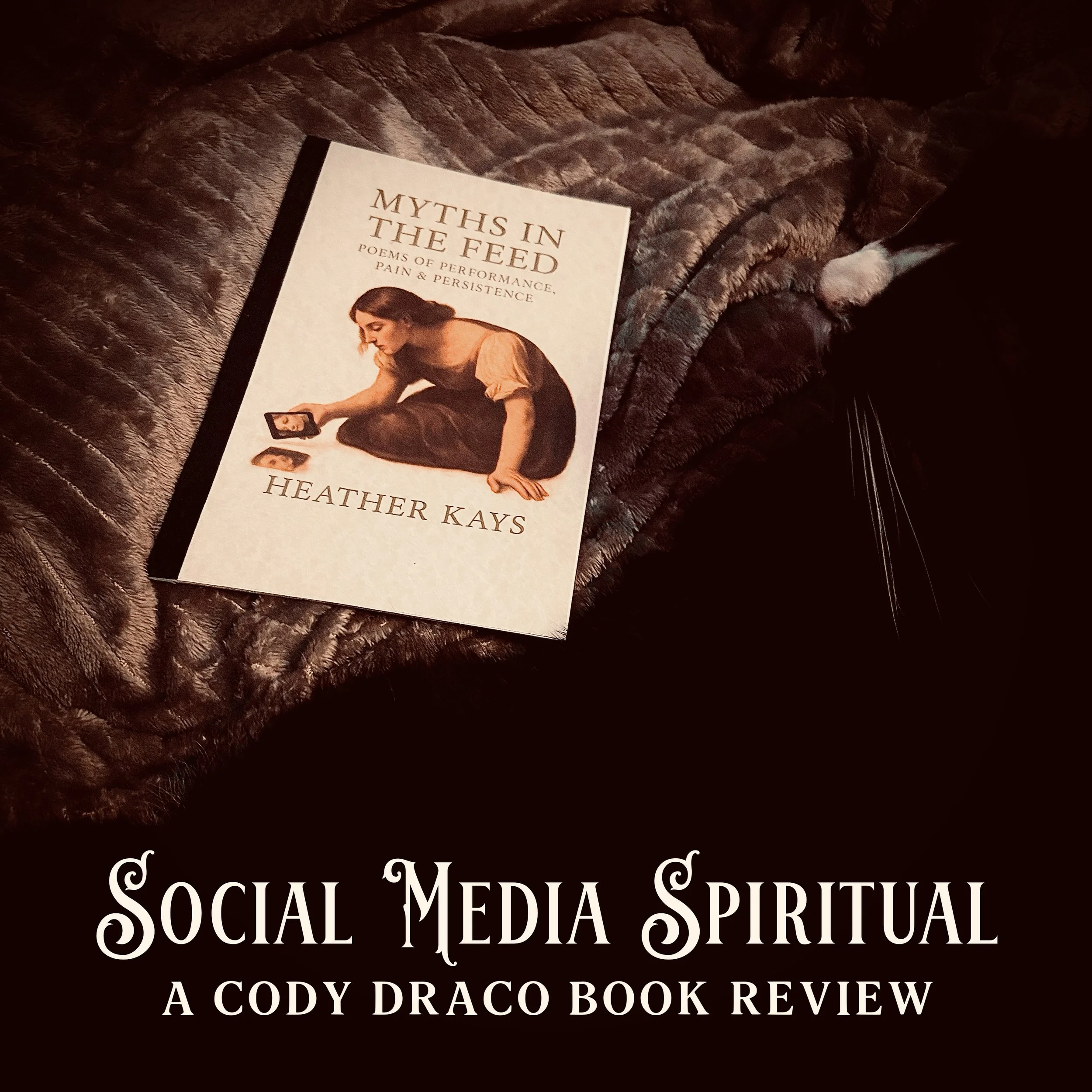 People say, “Don’t judge a book by it’s cover” but I was spellbound by a single image at first glance. The artwork that preceded my exposure to Myths in the Feed felt like a digital mystic revelation, appearing on my Instagram feed by way of Crying Heart Press, as if gifted to me personally, dropped off via the often unpredictable yet unmistakably clutch delivery service that is divine timing. Heather Kays has arrived with a devastatingly understated masterpiece, achieving through highly quoteable photo-caption and bite-sized bio ready profoundities, the awe-inspiring feat of making social media spiritual. Both an identity crisis and an emergency reconstructive surgery, this poetry collection felt like a character study of the 21st century, a concise and definite must-read.